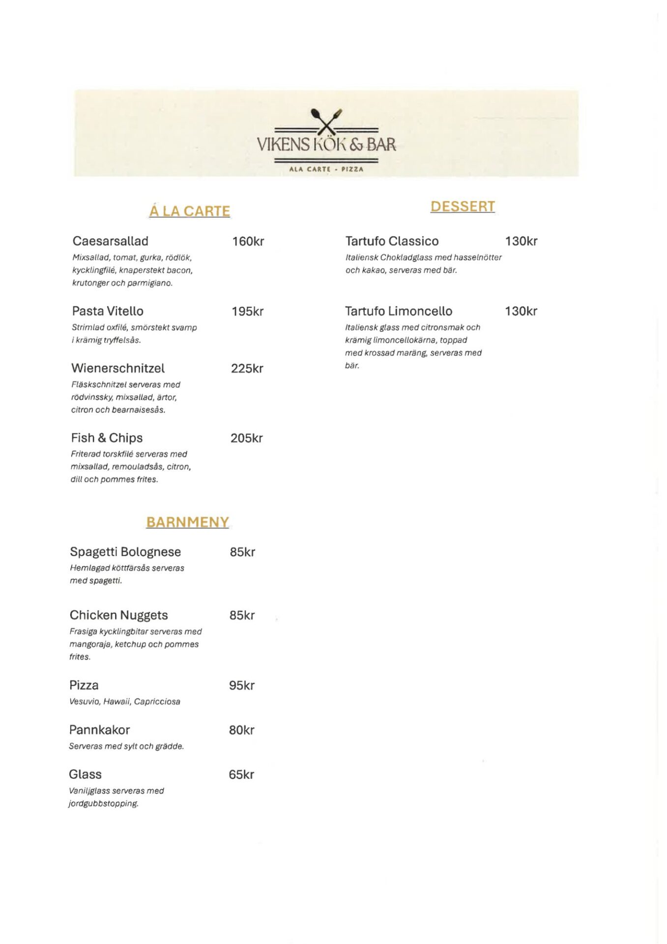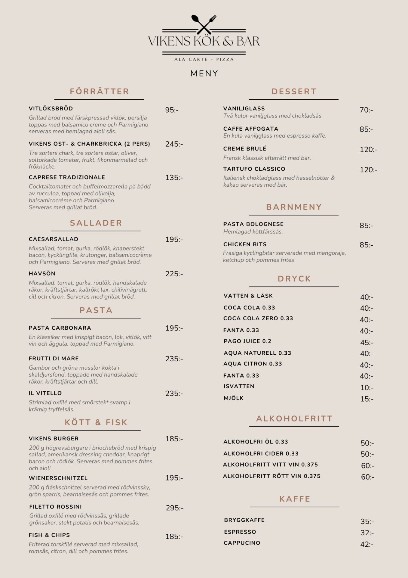 Hos oss möts erfarenhet, kvalitet och kustens charm – varmt välkommen till Vikens Kök & Bar.